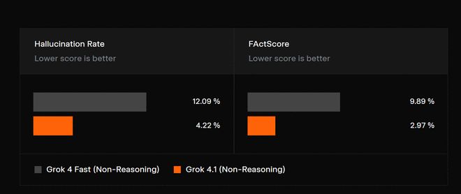 根据xAI的说法,Grok 4.1出现幻觉的概率是此前模型的三分之一,这使其成为xAI迄今为止的最佳版本之一。